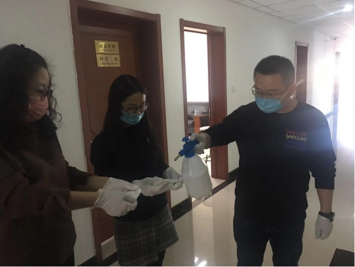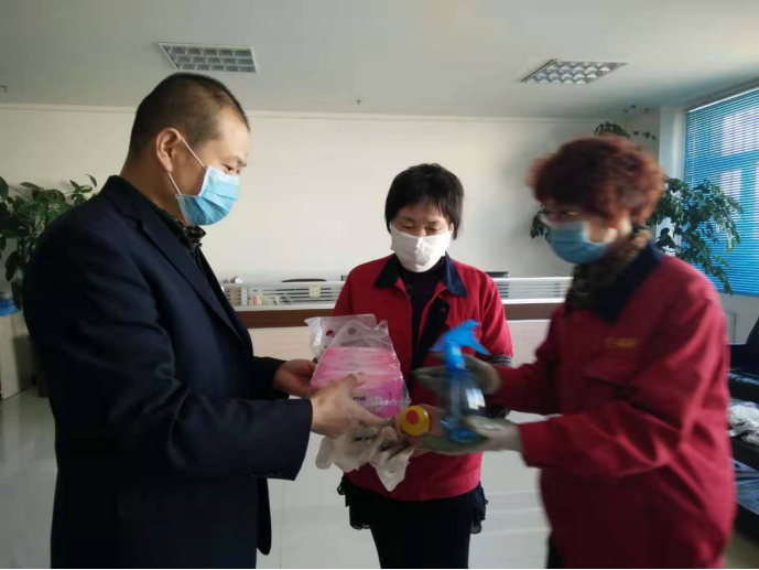 守護(hù)職工筑牢"安全防線":物產(chǎn)配送公司黨委通過(guò)配發(fā)酒精40公斤、84消毒液6瓶、消毒濕巾等防控器具,及時(shí)組織黨員指導(dǎo)職工進(jìn)行防控工作,重點(diǎn)對(duì)宿舍、辦公室、值班室、洗手間門把手、辦公桌椅等進(jìn)行噴灑消毒。