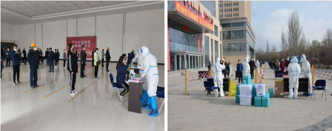在疫情防控緊要時(shí)期,主動(dòng)配合落實(shí)核酸檢測(cè)等防控措施。多頻次聯(lián)系大通縣疫情防控指揮部及北川園區(qū)管委會(huì),于4月14日、4月17日開(kāi)展兩輪核酸檢測(cè)行動(dòng)。為做好本次核酸檢測(cè)工作,公司黨政領(lǐng)導(dǎo)班子高度重視,科學(xué)謀劃,與相關(guān)單位溝通銜接后,連夜加班在園區(qū)空曠區(qū)域設(shè)置檢測(cè)點(diǎn),方便核酸檢測(cè)工作;同時(shí)根據(jù)公司生產(chǎn)經(jīng)營(yíng)實(shí)際,公司財(cái)務(wù)審計(jì)部、實(shí)業(yè)開(kāi)發(fā)部人員、供銷(xiāo)部負(fù)責(zé)同志協(xié)同公司所屬各單位,密排人員在崗、離崗、休班情況,提前編制完成人員信息統(tǒng)計(jì)及分組排序表;歷經(jīng)全員密切配合,兩次共采集核酸檢測(cè)樣本2093個(gè),保證了篩查應(yīng)檢盡檢、無(wú)一遺漏,及時(shí)排除風(fēng)險(xiǎn)。