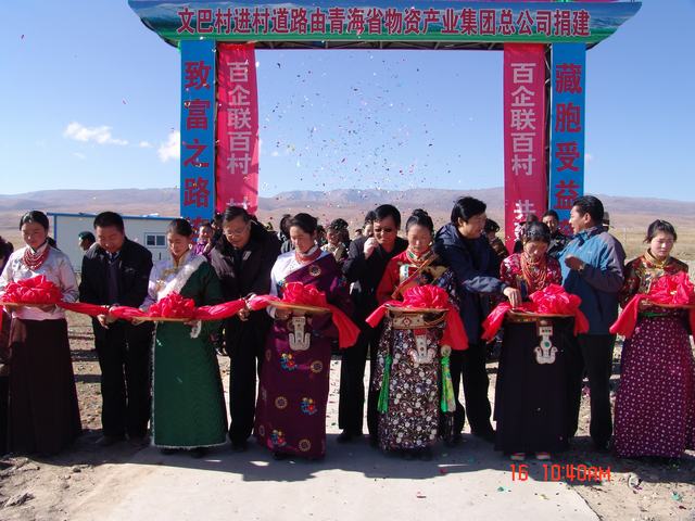 交接儀式上,集團(tuán)公司總經(jīng)理王玉輝、共和縣人大常委會(huì)主任尕瑪才讓為元者村黨員活動(dòng)室、科普文化室、醫(yī)療衛(wèi)生室揭牌之后,與黨委書記白家林、紀(jì)委書記王仁芬、共和縣委常委、組織部長(zhǎng)官卻南見(jiàn)等領(lǐng)導(dǎo)為共和縣黑馬河鄉(xiāng)文巴村進(jìn)村道路通車剪彩。集團(tuán)公司黨委書記白家林代表省物產(chǎn)集團(tuán)向共和縣江西溝鄉(xiāng)提前捐送元者村游牧民定居點(diǎn)工程配套資金100,000元。集團(tuán)公司紀(jì)委書記王仁芬、共和縣委常委、組織部長(zhǎng)官卻南見(jiàn)、江西溝鄉(xiāng)元者村村長(zhǎng)、文巴村村長(zhǎng)分別代表捐建方、受捐方致辭發(fā)言。至此,青海物產(chǎn)集團(tuán)在"百企聯(lián)百村"活動(dòng)中擬投入的1,455,500元,已到位1,255,500元。剩余的200,000元游牧民定居點(diǎn)工程建設(shè)項(xiàng)目捐款將根據(jù)工程進(jìn)度分期轉(zhuǎn)付。