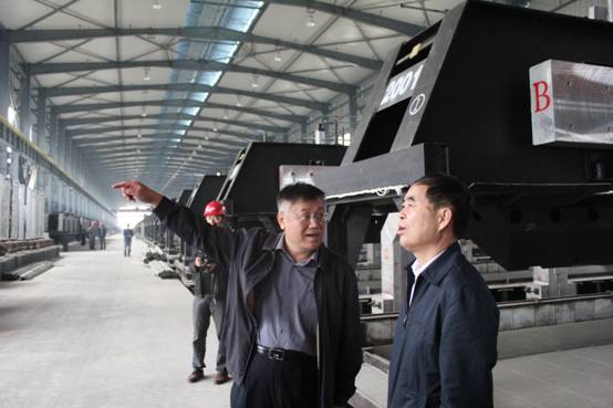 圖一:駱副省長(中)一行在集團王總(右一)等領導的陪同下實地來到生產(chǎn)車間視察